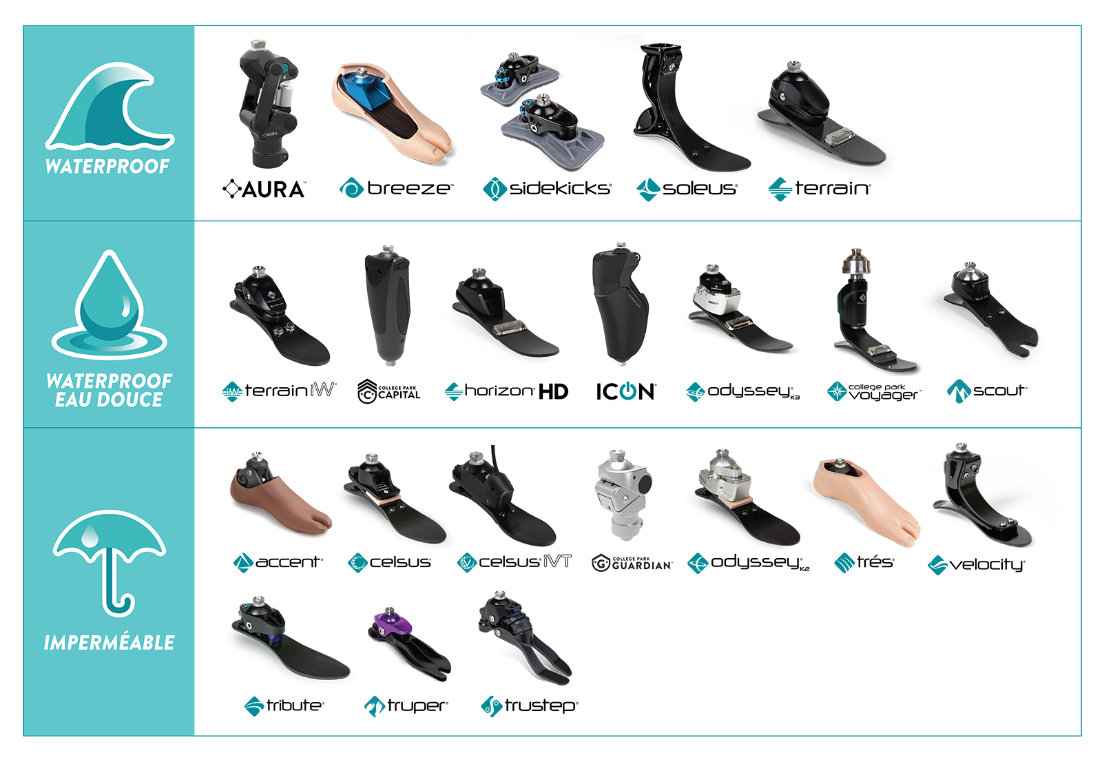 La technologie prothétique doit être conçue pour restaurer les mouvements naturels et les expériences perdues à la suite d’une amputation. Dans de nombreux cas, cela signifie résister aux environnements humides ! Grâce à des tests de qualité approfondis, les ingénieurs de College Park repoussent les limites de la notion d’« étanchéité ». Que ce soit pour surfer dans l’océan, travailler dans une atmosphère humide ou danser sous la pluie, College Park propose des solutions adaptées.